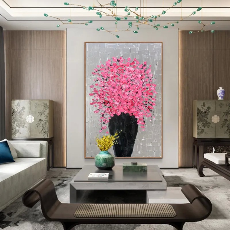 Décoration intérieure moderne Texture épaisse Abstrait Relief 3D Couteau huile de fleurs peinte à la main toile Art murale